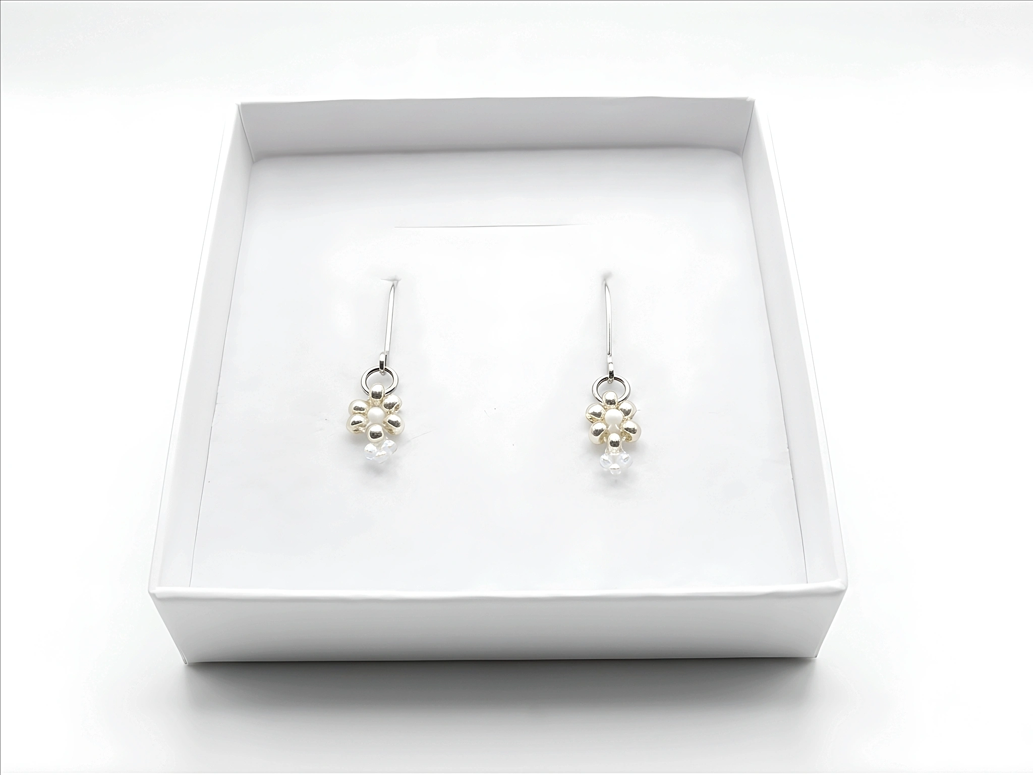 Visací náušnice „Ledový květ“ – Miyuki & Ocel. Rozzařte svůj vzhled chladivou elegancí s těmito půvabnými náušnicemi „Ledový květ“. Tyto visací náušnice jsou dokonalým doplňkem, který dodá vašemu dni svěží, jiskřivý a jemně mrazivý nádech.