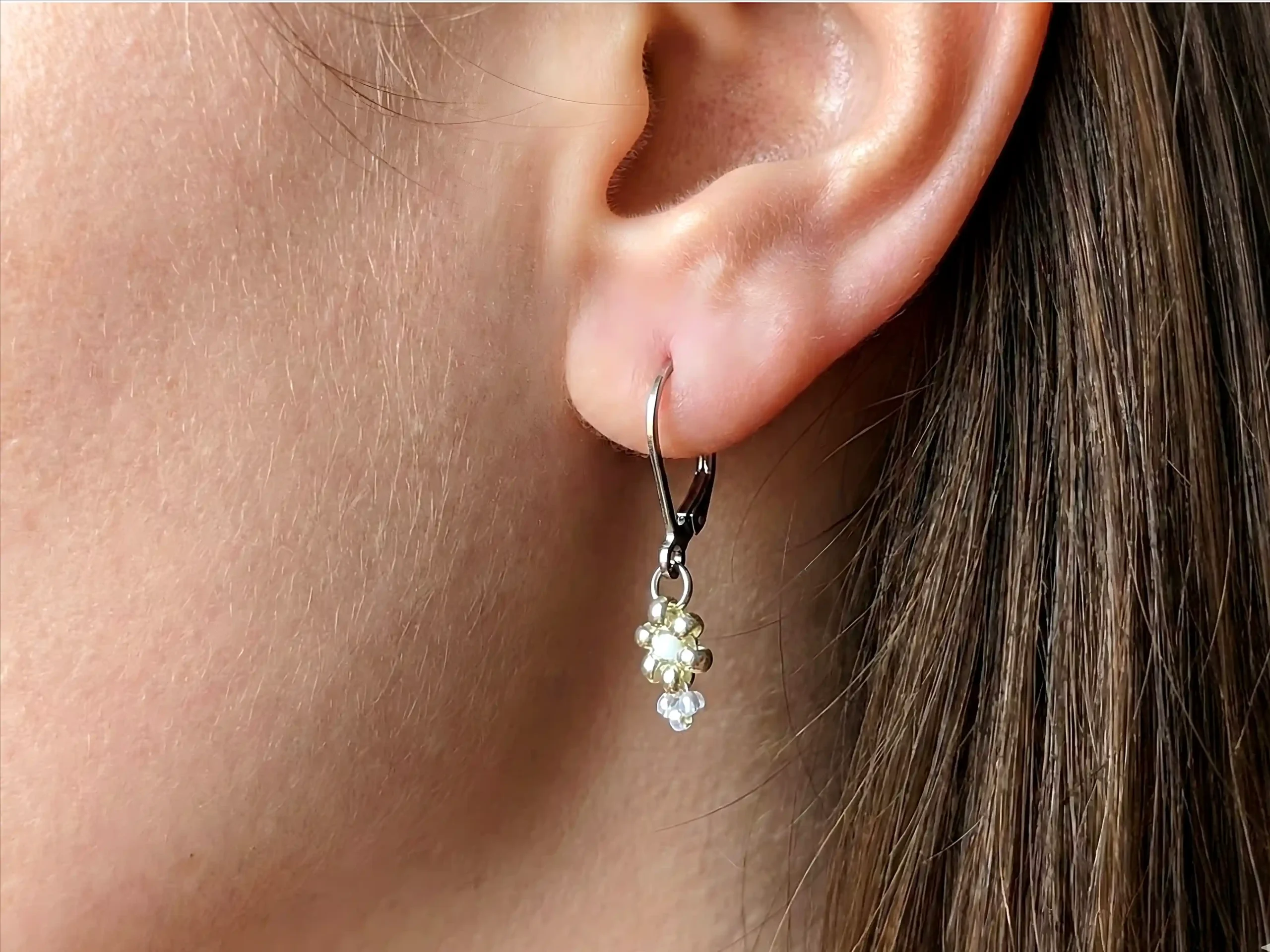 (Vhodné pro: Každodenní nošení. Díky použití oceli 316L na části v uchu je šperk dobře snášen, ale osoby se silnou alergií na nikl by měly brát v potaz použití oceli 304 na spojovacích kroužcích.) (Proč kombinujeme ocel 316L a 304? Abychom zajistili maximální kvalitu, používáme na část procházející uchem (zapínání) ocel 316L, která má přísnější limity pro uvolňování niklu a je považována za hypoalergenní standard. Na spojovací kroužky používáme ocel 304 primárně pro její vyšší tvrdost a pevnost. I ocel 304 splňuje normy pro běžný styk s pokožkou, ale pro velmi silné alergiky je fér tento rozdíl uvést.) (Co je Fireline? Fireline je vysoce kvalitní, extrémně pevná splétaná šňůra vyrobená z gelově spřádaných polyethylenových vláken. Ve světě šperků je ceněná pro svou mimořádnou pevnost, odolnost proti oděru a fakt, že se netřepí ani neprotahuje.)