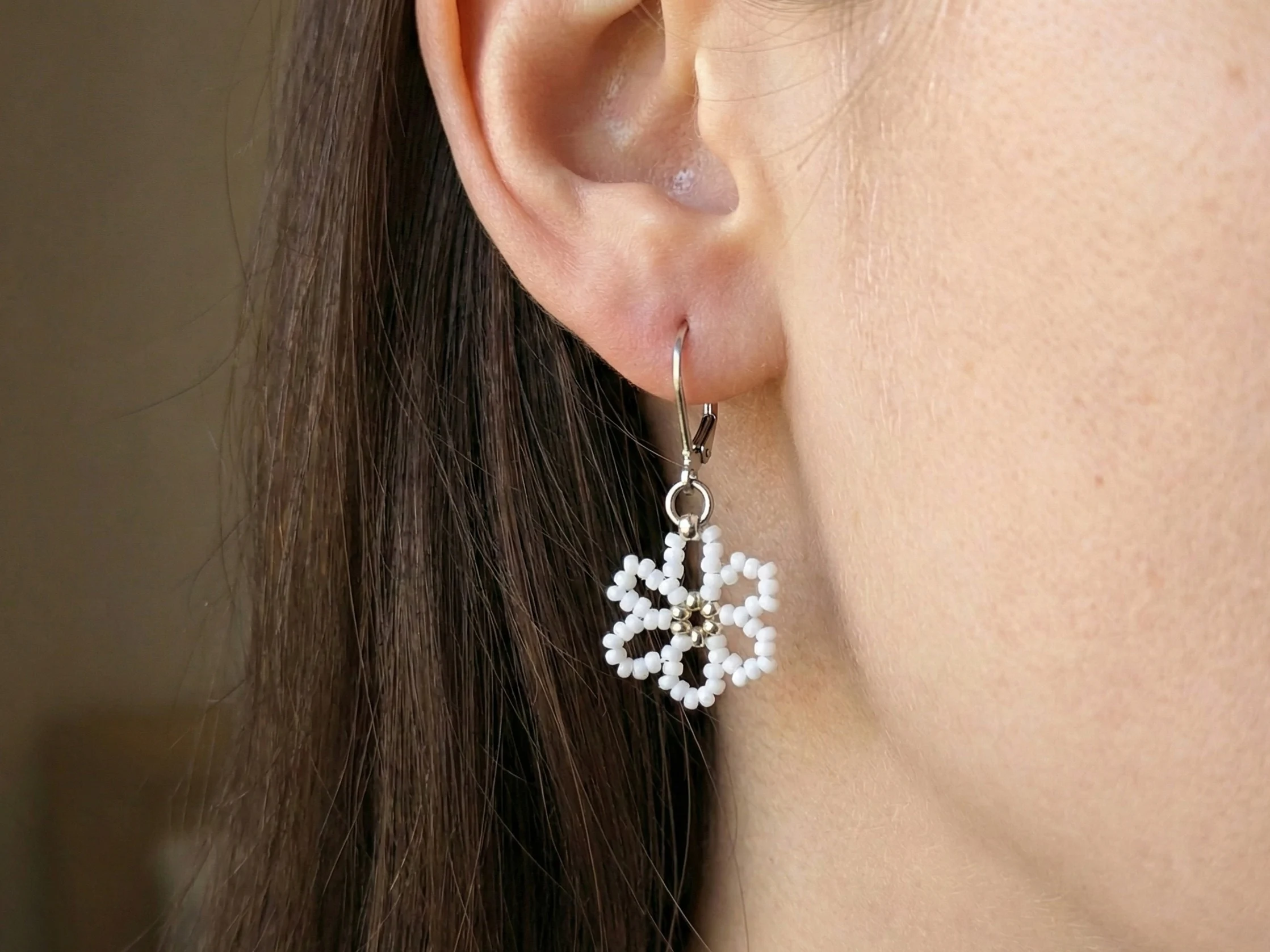 Každý detail je precizně ručně vyroben ze skleněných japonských korálků Miyuki o velikosti 2-3 mm. Kombinace sněhově bílých okvětních lístků se stříbrným středem vytváří jemný, ale efektní design. Celý přívěsek je vytvořen na vysoce pevném vlasci značky Fireline. Pro maximální odolnost a jistotu je šňůra zakončena pevným uzlíkem, zajištěným speciálním lepidlem.