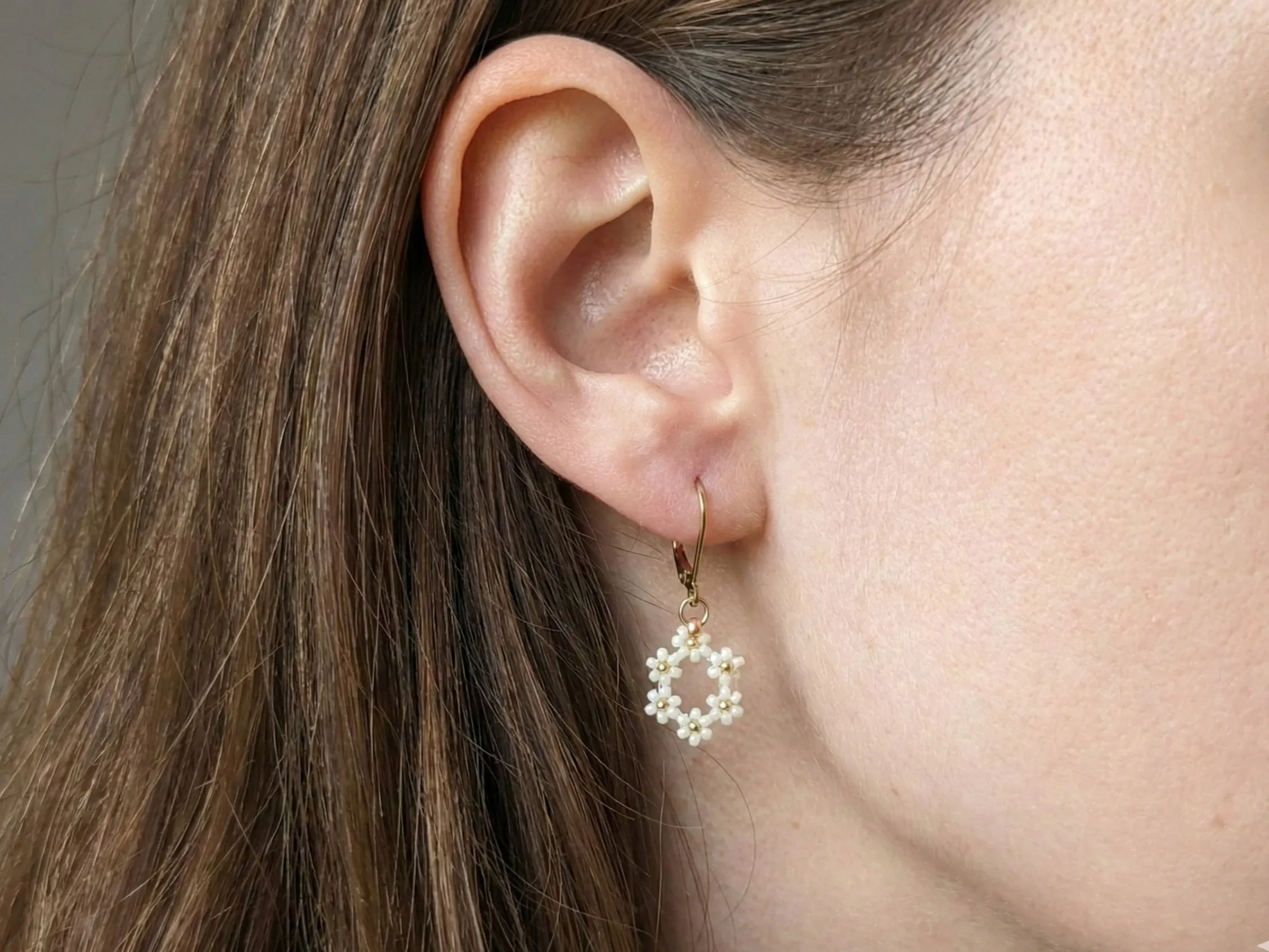 V našem ateliéru odmítáme sériovou výrobu a dáváme přednost poctivému řemeslu. Jsme hrdí na to, že (každý kousek je pečlivě vytvořen s láskou k detailu a kombinuje precizní japonské korálky Miyuki s vysoce kvalitní nerezovou ocelí.) Samotné tělo přívěsku, evokující drobný květinový věneček nebo sněhovou vločku, je tvořeno s maximální trpělivostí. Unikátní tvar vzniká tak, že (jemné kroužky jsou pečlivě osázeny drobnými kvítky ze skleněných korálků Miyuki o velikosti 2-3 mm v krémově bílé a zlaté barvě.) Japonské korálky Miyuki jsou proslulé svou absolutní tvarovou dokonalostí, díky níž je výsledný motiv krásně pravidelný, symetrický a na pohled harmonický.