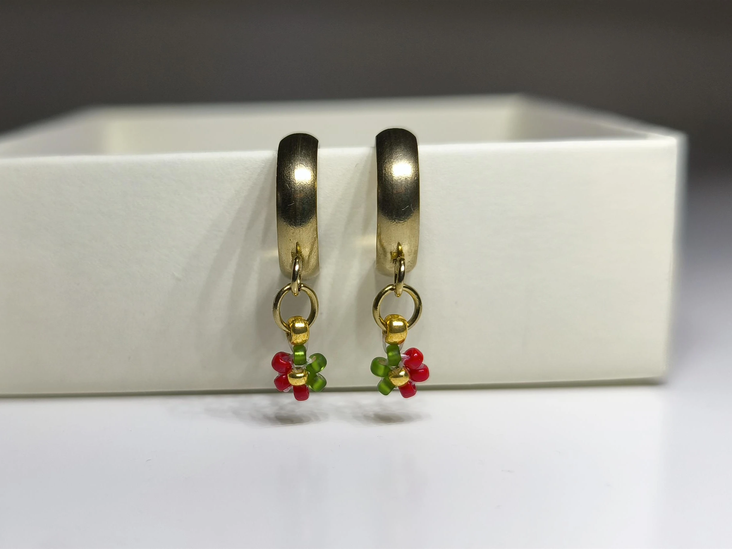 Přeneste se do kouzelného vánočního času s těmito půvabnými náušnicemi „Vánoční přání“. Kombinace zlatého kroužku a drobného kvítku v tradičních svátečních barvách je dokonalým doplňkem ke štědrovečerní večeři nebo jako dárek, který vykouzlí úsměv pod stromečkem.