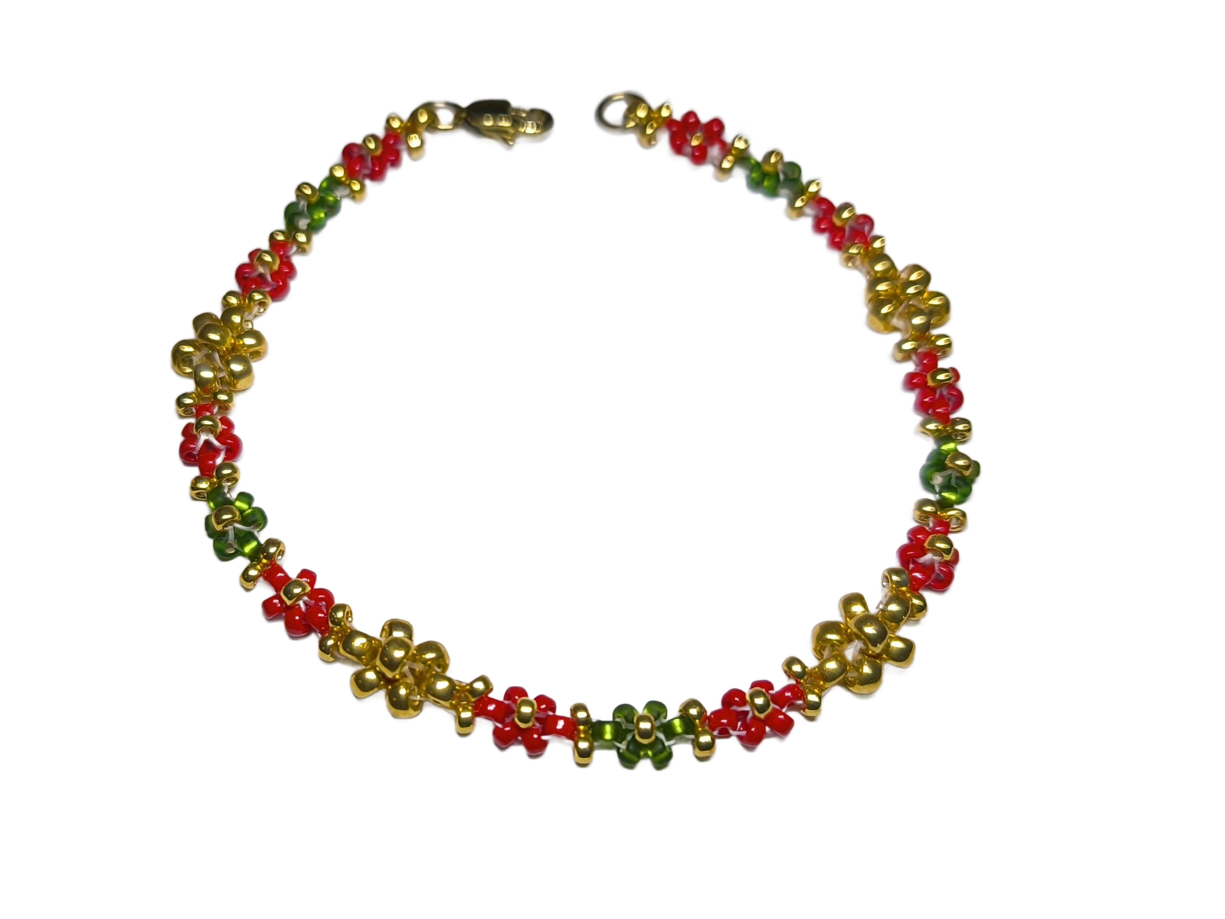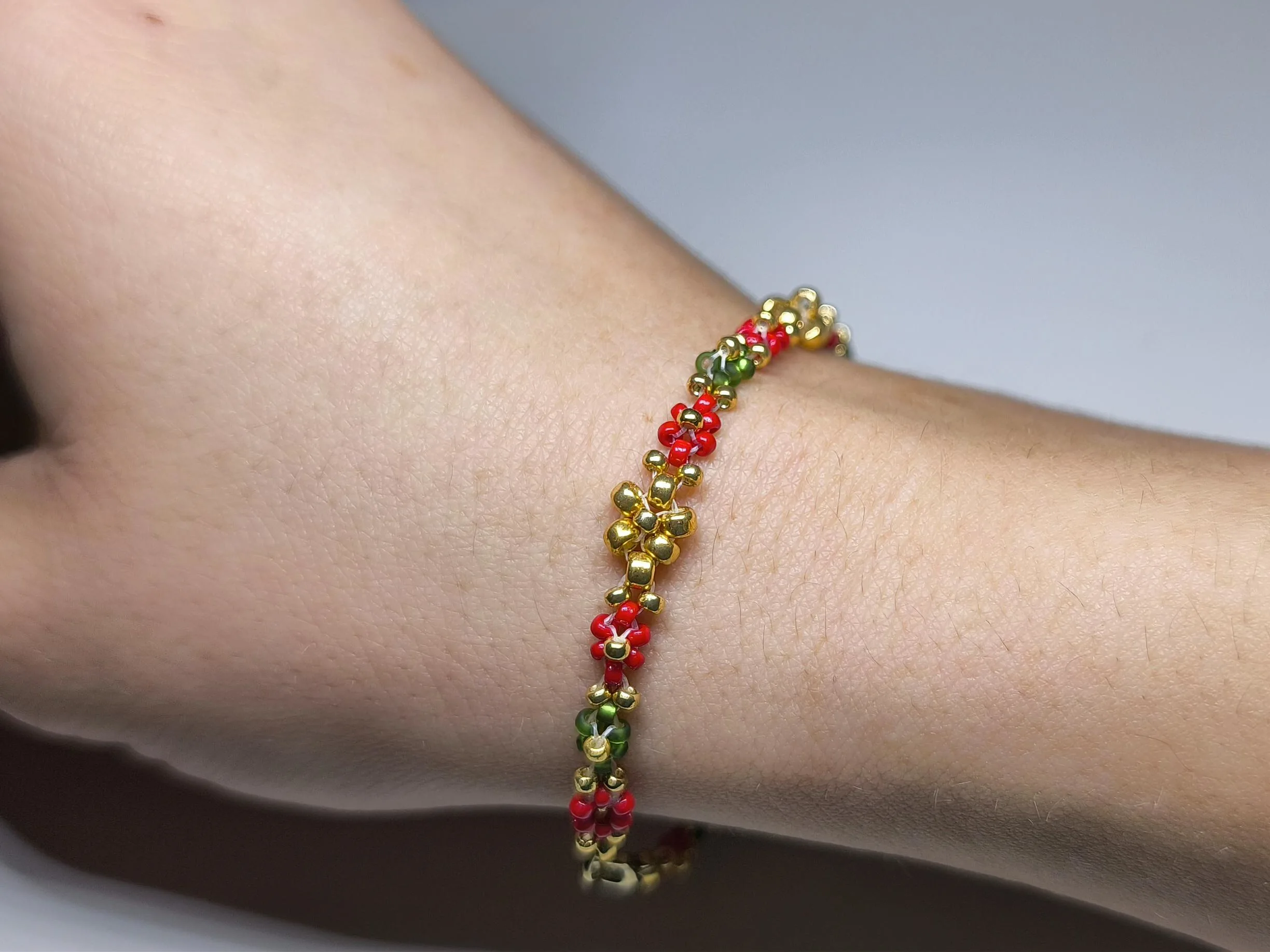 Ozdobte své zápěstí symbolem Vánoc s náramkem „Vánoční přání“. Tento kouzelný náramek s motivem drobných kvítků v tradičních svátečních barvách je dokonalým doplňkem, který podtrhne vaši eleganci a dodá vašemu vzhledu radostný, hřejivý a sváteční nádech.
