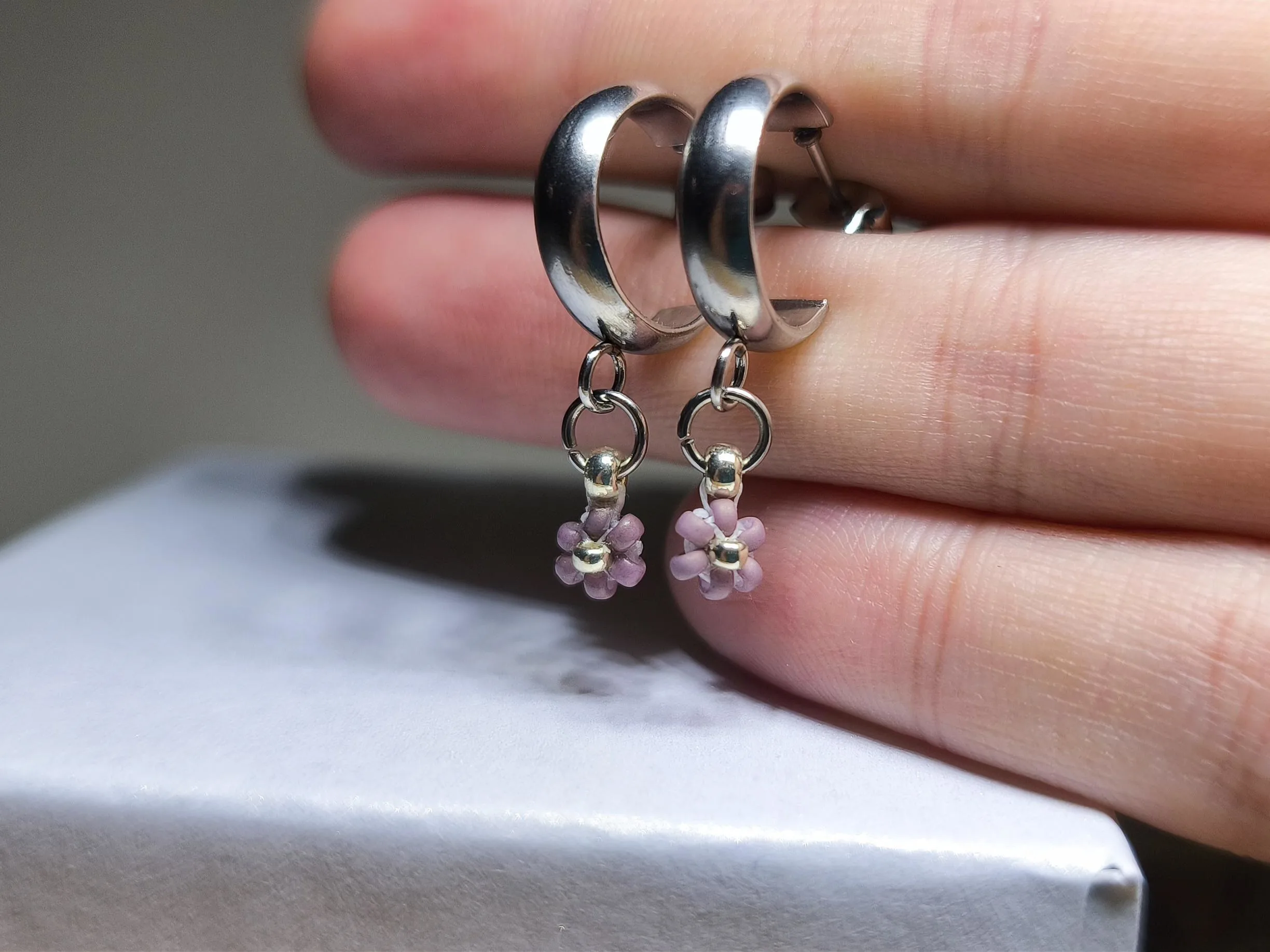 Sada „Viola“ – Náramek & Náušnice | Miyuki & Ocel. Vneste do svého dne dotek jarní svěžesti a romantiky s touto půvabnou sadou „Viola“. Kombinace květinového náramku a ladících náušnic s elegantním stříbrným polokroužkem vytváří ucelený set, který dodá vašemu vzhledu něžný, čistý a harmonický nádech. Je to ideální volba pro milovnice jemných barev a stříbrného lesku.
