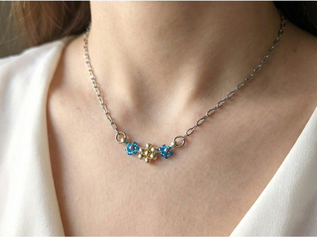 Náhrdelník "Pomněnka" - Miyuki & Ocel