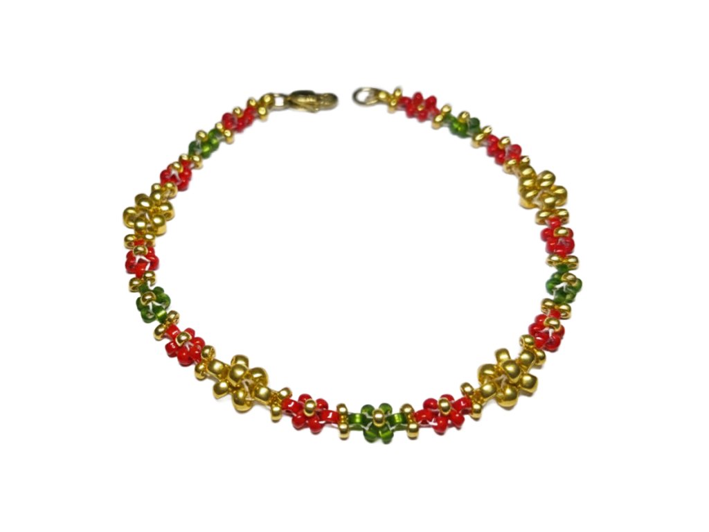 Ozdobte své zápěstí symbolem Vánoc s náramkem "Vánoční přání". Tento kouzelný náramek s motivem drobných kvítků v tradičních svátečních barvách je dokonalým doplňkem, který podtrhne vaši eleganci a dodá vašemu vzhledu radostný, hřejivý a sváteční nádech.