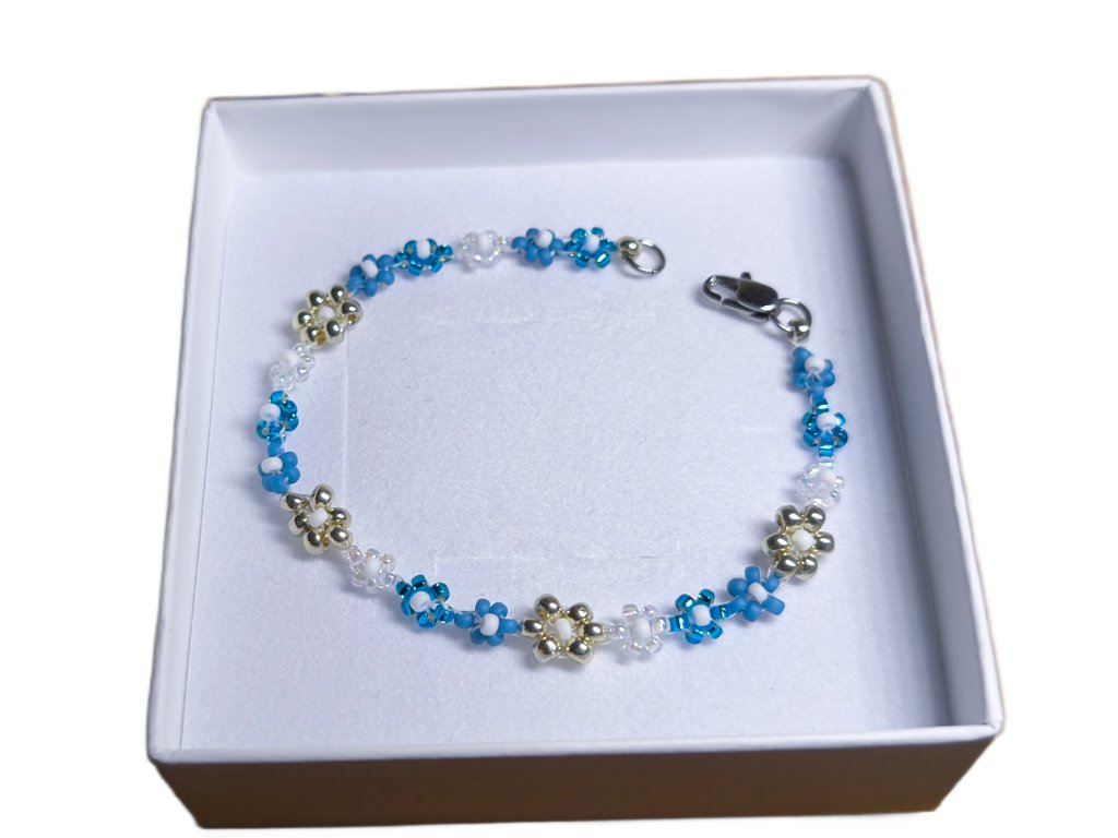 Ozdobte své zápěstí jemným květinovým náramkem. Tento něžný náramek s motivem drobných kvítků je dokonalým doplňkem, který podtrhne vaši eleganci a dodá vašemu vzhledu svěží, chladivou a ledově elegantní jiskru.